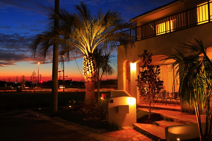 3mのドラセナ(シンボルツリー)を全棟、通りに沿って配置し、また街の景観ポイントにココスヤシ(景観木)を配置しております。