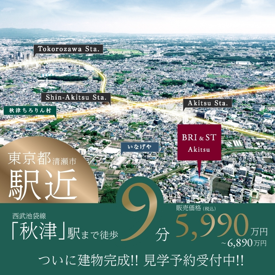 豊かな緑をたたえながらも利便が整う「秋津」に、都市の賑わいが集う「所沢」が生活圏の住環境。