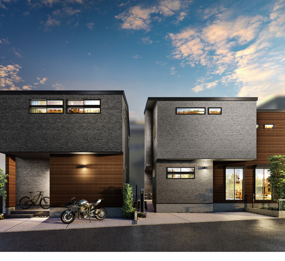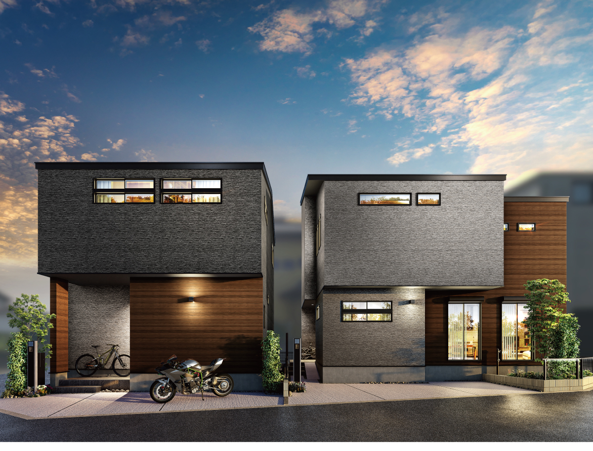 木の質感をリアルに再現した素材感あふれる外壁材を組み合わせ、重厚かつナチュラルな装いに。