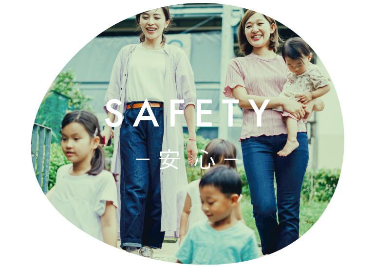 街の共有地に東屋やシェアサイクルのほか、防災備蓄庫を設けることで、万一の際に安心できる広場としました。また全邸に設けた太陽光発電システムも、いざという時に頼りになります。