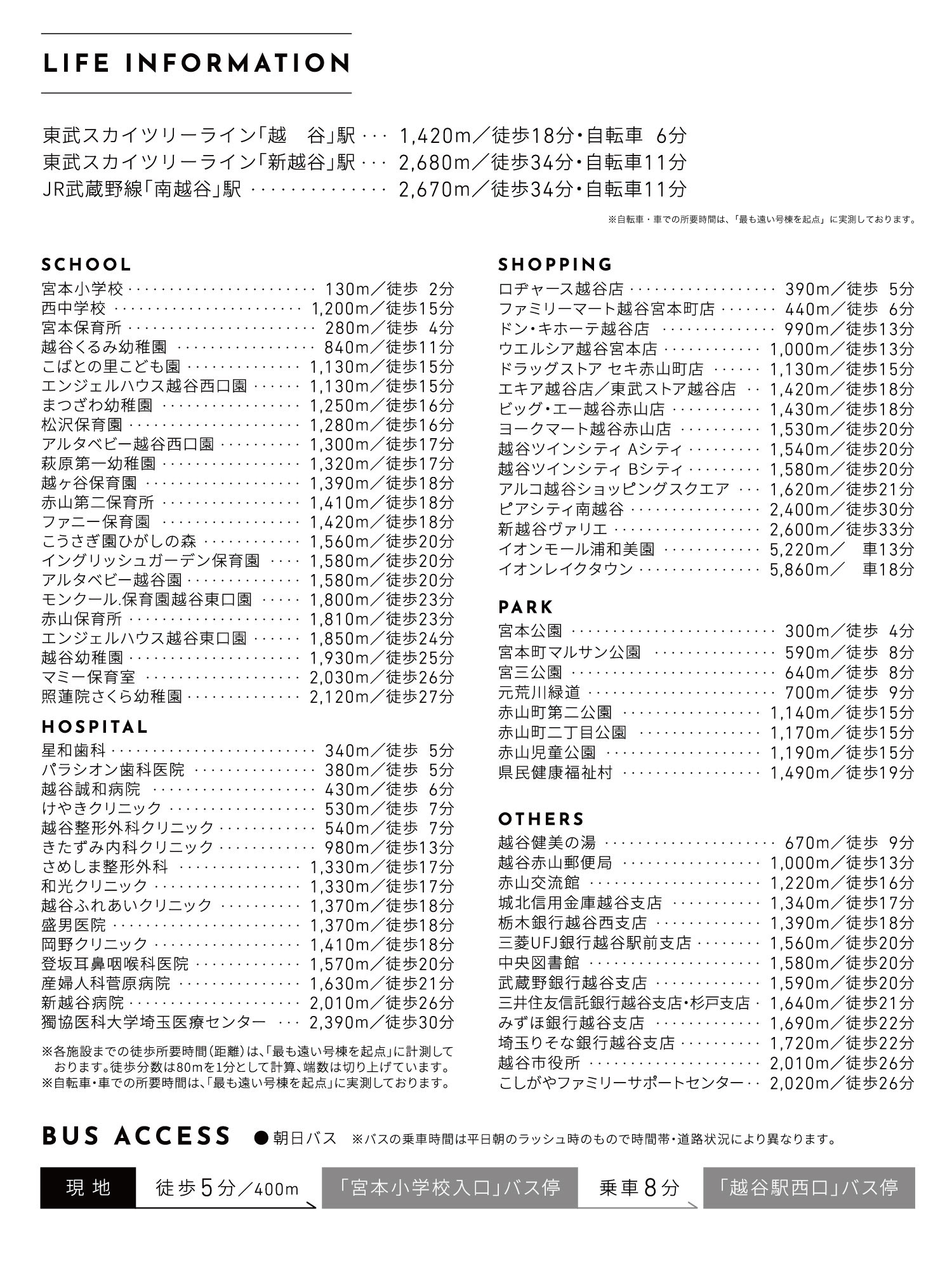 ※自転車・車での所要時間は、「最も遠い号棟を起点」に実測しております。