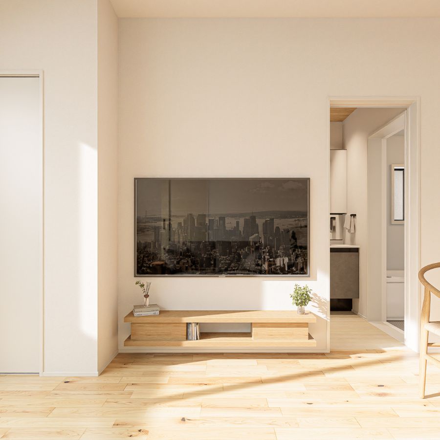 ダウンライトを除く照明・カーテン・食器棚・家具・家電・日曜用品等はイメージで、実際にはデッキ、テレビ台は付属しておりません。