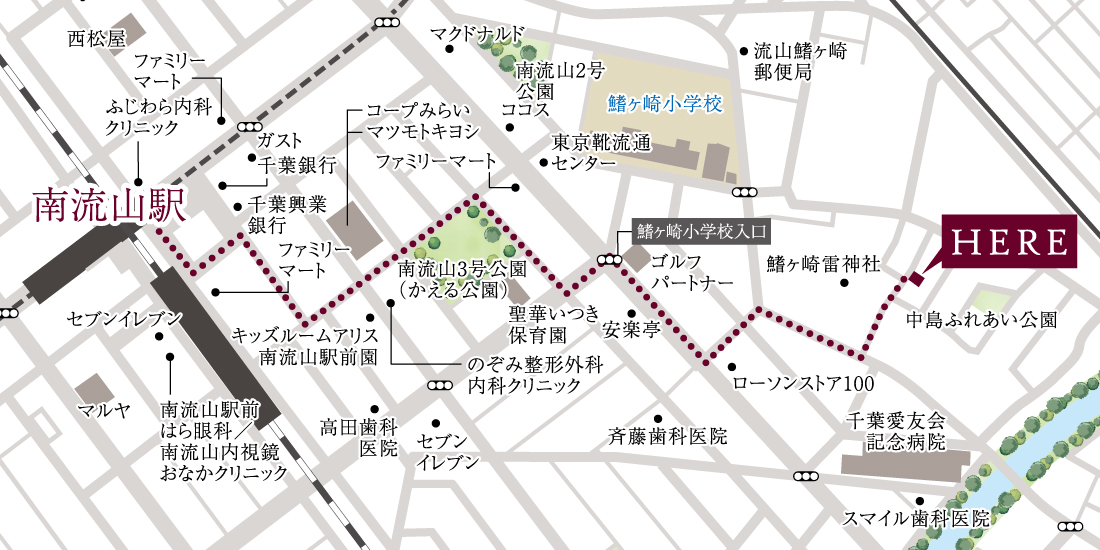 3駅3路線が利用可能な交通利便性に恵まれた住まいの周辺には商業施設をはじめ、日々の暮らしを支える各種生活施設が充実しています。つくばエクスプレス「南流山」駅(950m/徒歩12分)