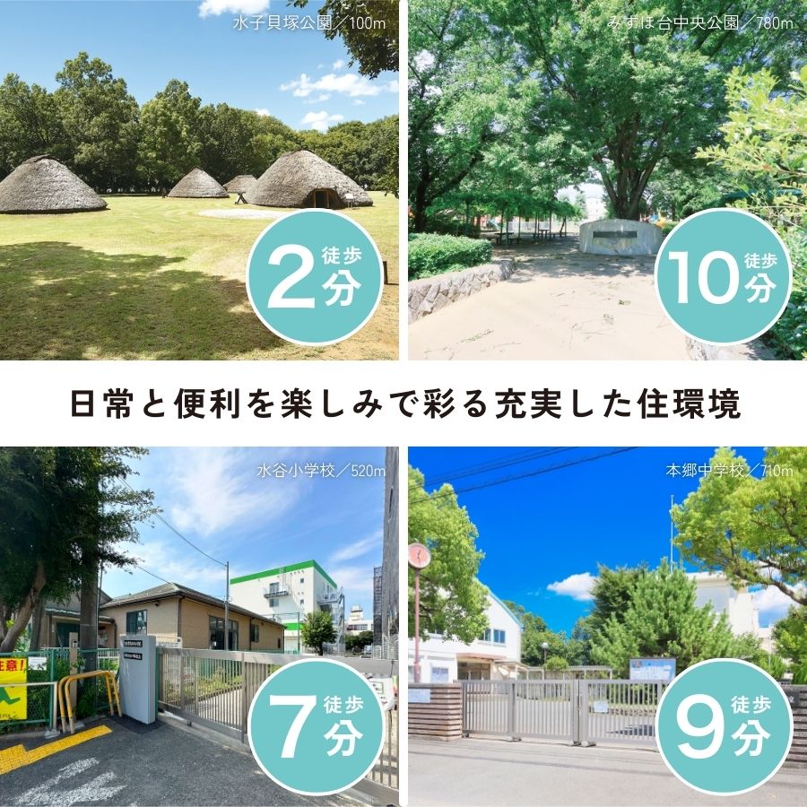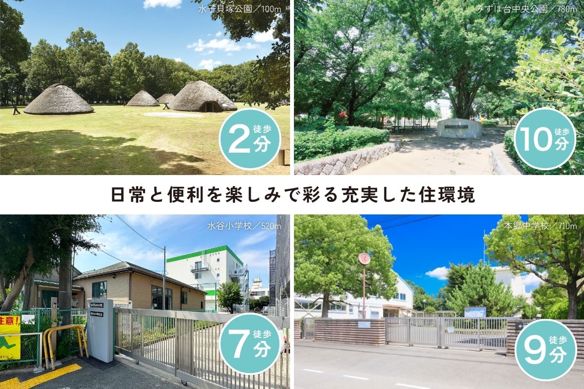 ◆「水谷小学校」まで徒歩7分、「本郷中学校」まで徒歩9分