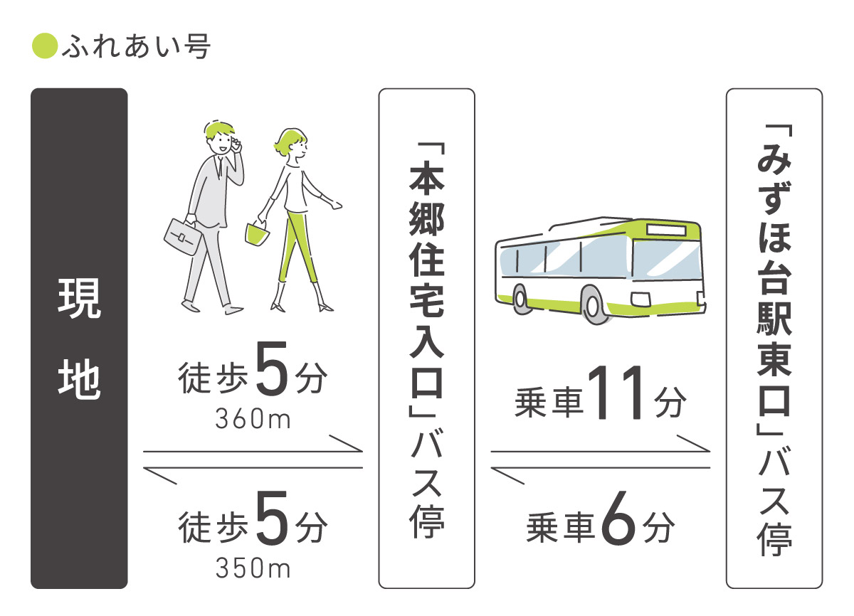東武東上本線「みずほ台」駅までバス11分「本郷住宅入口」バス停まで徒歩4~5分