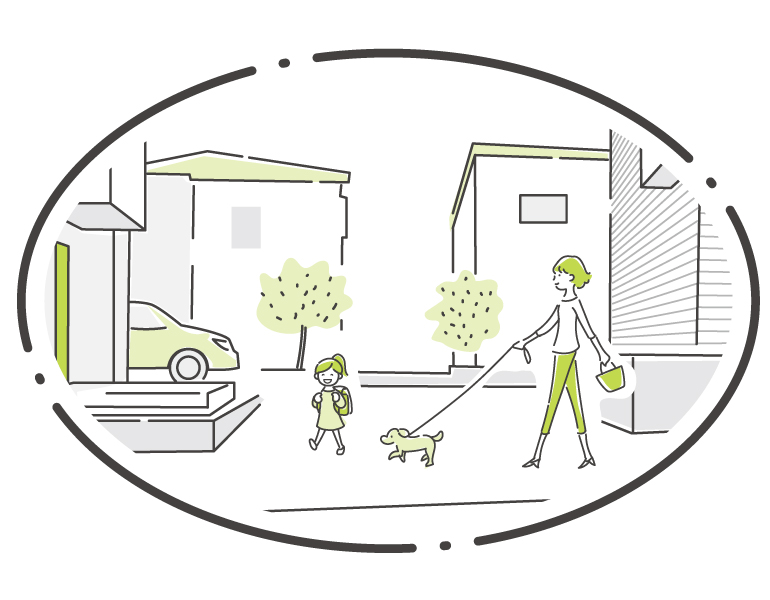 入口を絞ったコの字型の街区内道路にすることで、住人以外の通行が少ない、安心の街形状としました。