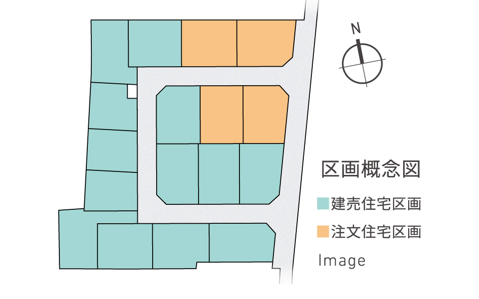 注文住宅が4区画分、建売住宅が13区画分となったわけですが、きちんとひとつの街のように区割りされていますね。