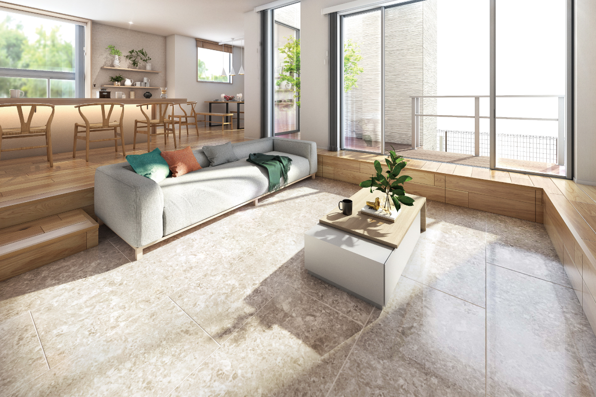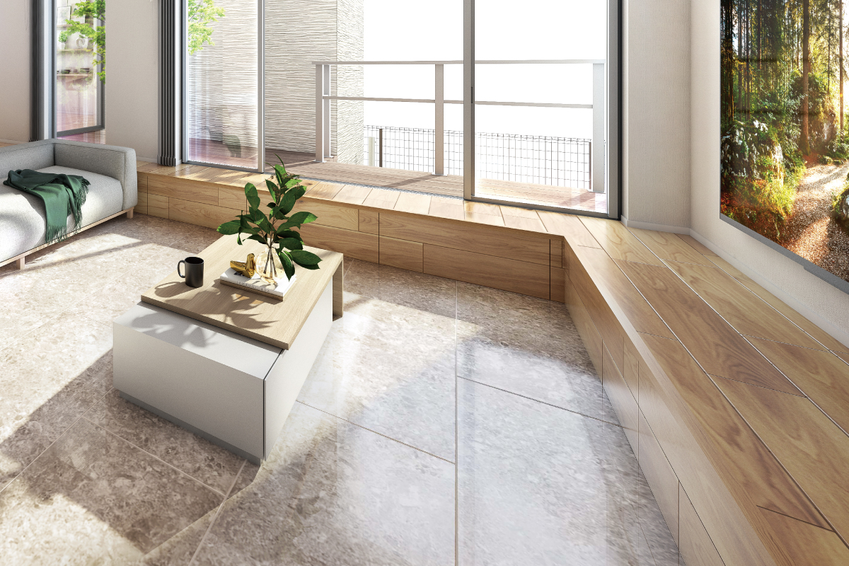目線を合わせる段差設計をほどこした「ステージ・キッチン」を暮らしの動線の中心に配置し、作る過程そのものをエンターテインメントに。作る人と囲む人の視線が自然とつながるので、料理が家族を呼び、笑顔が生まれる。それが、『KDL』を中心とした暮らしです。夫婦で一緒に料理を楽しみ、友人を招いてホームパーティーを開く。キッチンで食事をしながら会話する時間が、自然と増えていく。そんな暮らしを叶えるのが、従来のリビングを中心とする「LDK」ではなくキッチンを主役とした『KDL』という新しいライフスタイルの提案です。