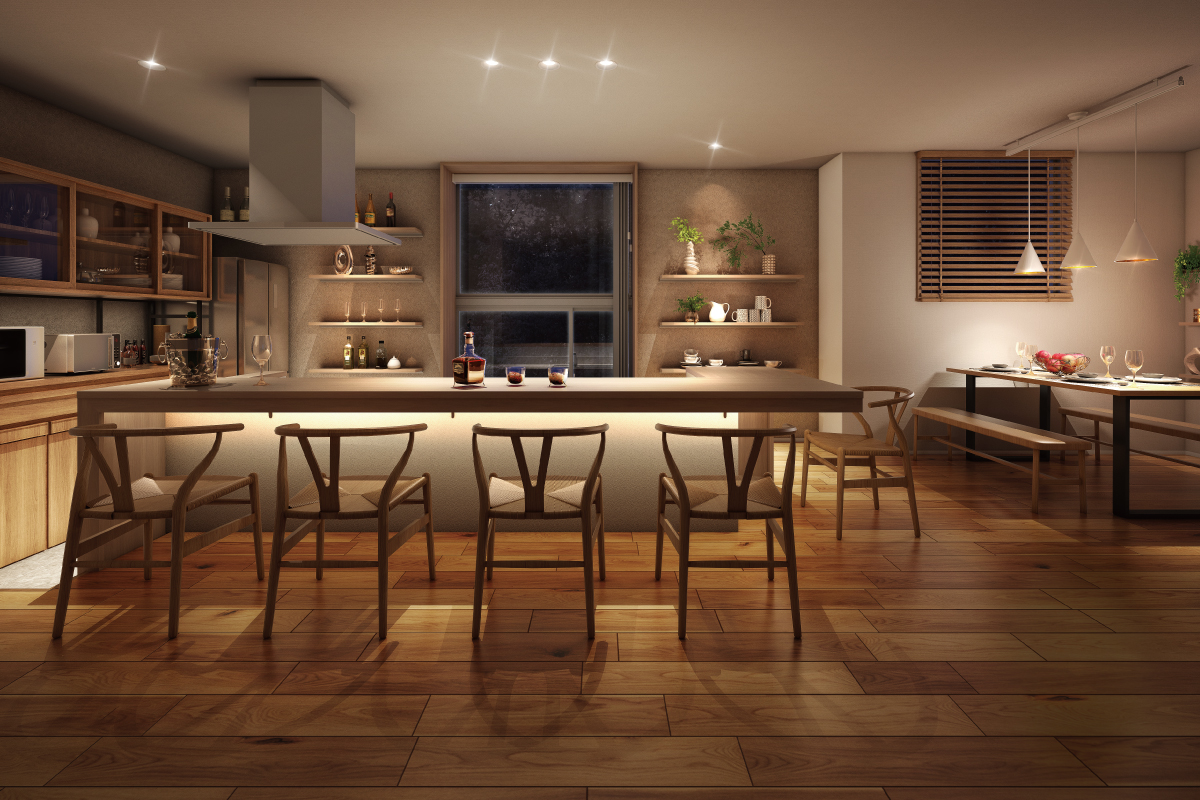 夫婦で一緒に料理を楽しみ、友人を招いてホームパーティーを開く。キッチンで食事をしながら会話する時間が、自然と増えていく。