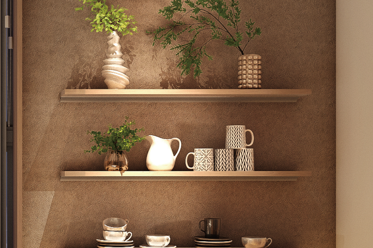 こだわりのインテリアや小物などを飾り、空間を演出できる棚をもうけました。