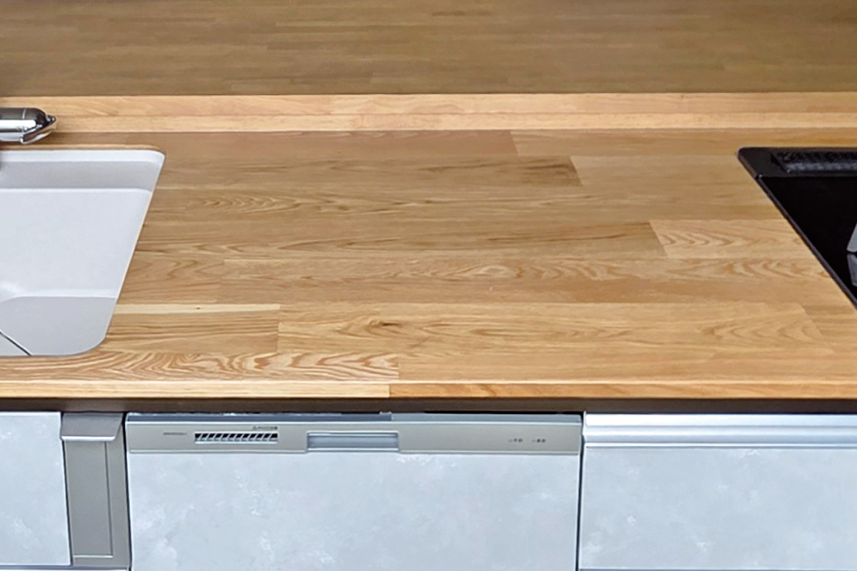 耐水性に加えて抗菌・抗ウイルス性能を備え、木目の質感も楽しめるワークトップを採用しました。