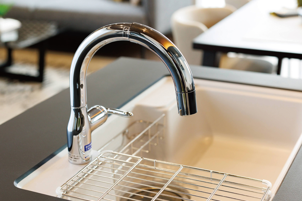 ◆「タッチレス蛇口一体型浄水器」を採用し、家事の利便性と衛生面に配慮。