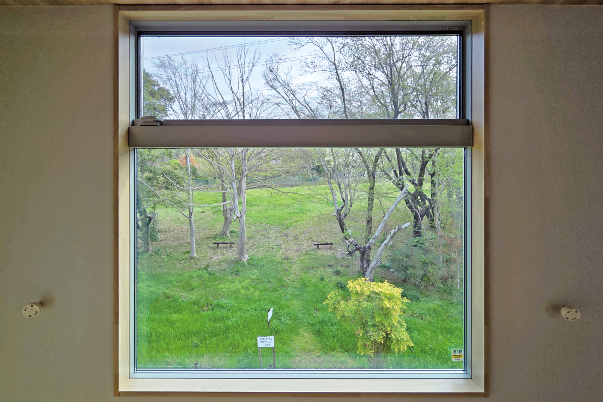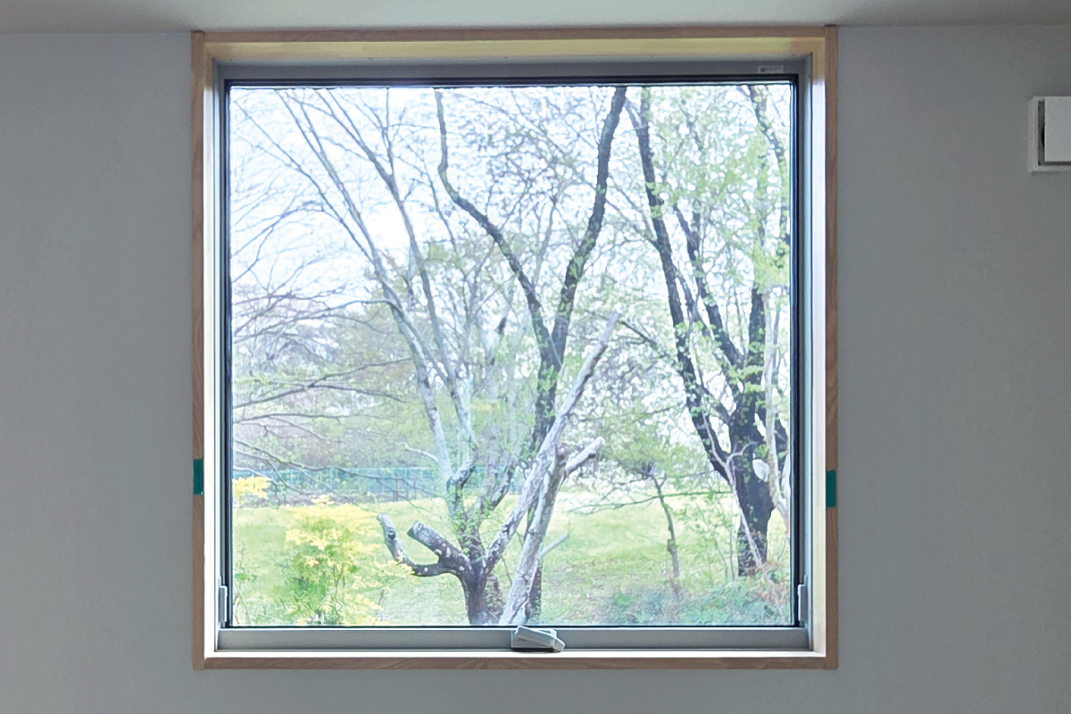 ◆緑地の景観をパノラマに切り取る、キッチン・カウンター横の「パノラマサッシ」