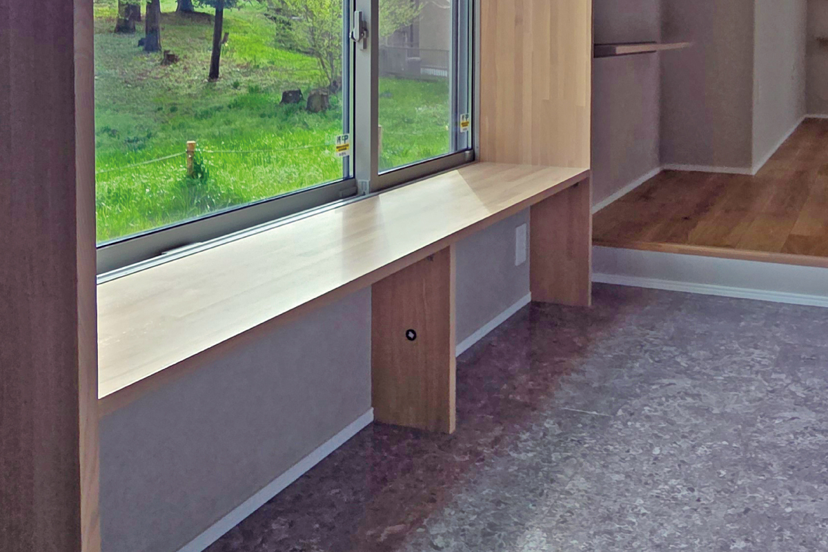 キッチンとリビングに、それぞれベンチをご用意。料理の合間に腰をかけたり、食事をしながら会話をするなど、日々を楽しく彩ってくれます。