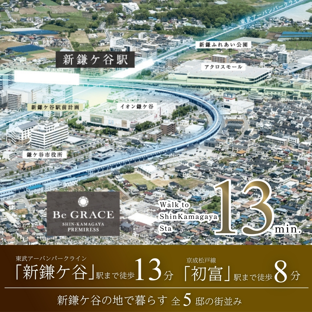 ◆4路線利用可能「新鎌ケ谷」駅まで徒歩13分の立地