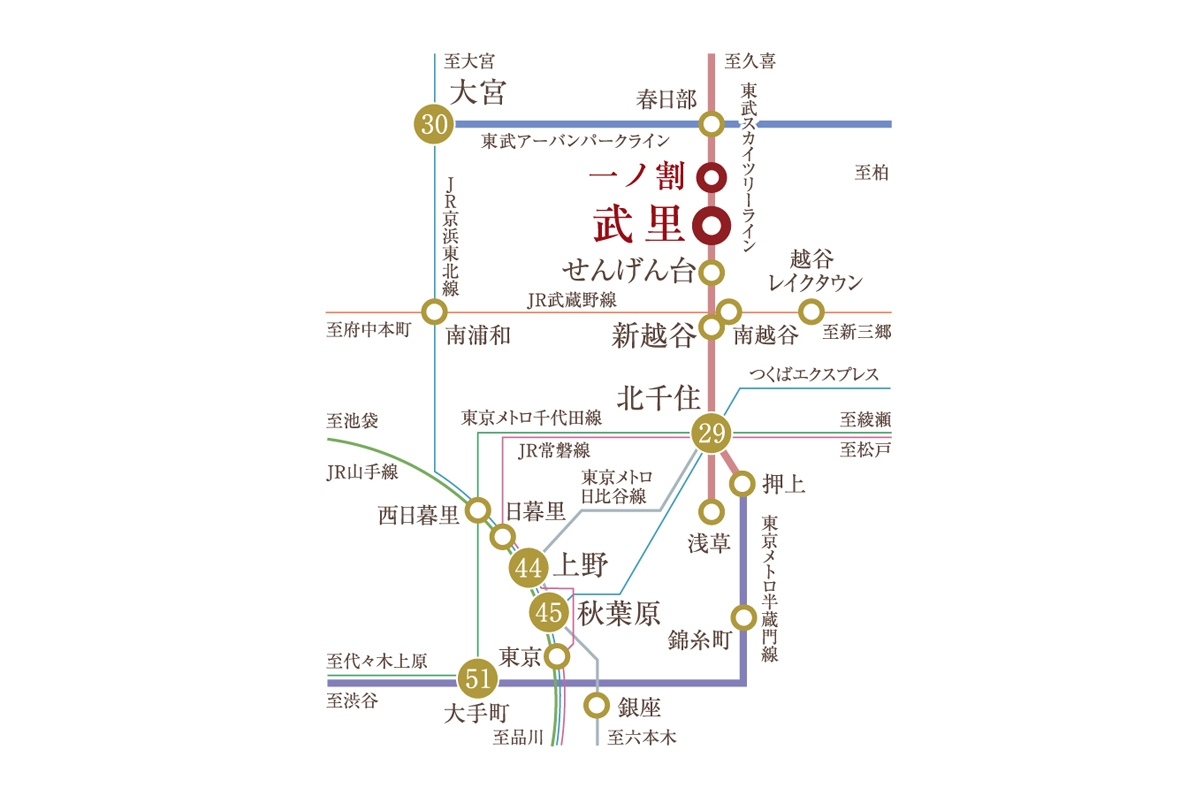 ◆東武スカイツリーライン「武里」駅まで徒歩15分~16分・自転車5分(実測)