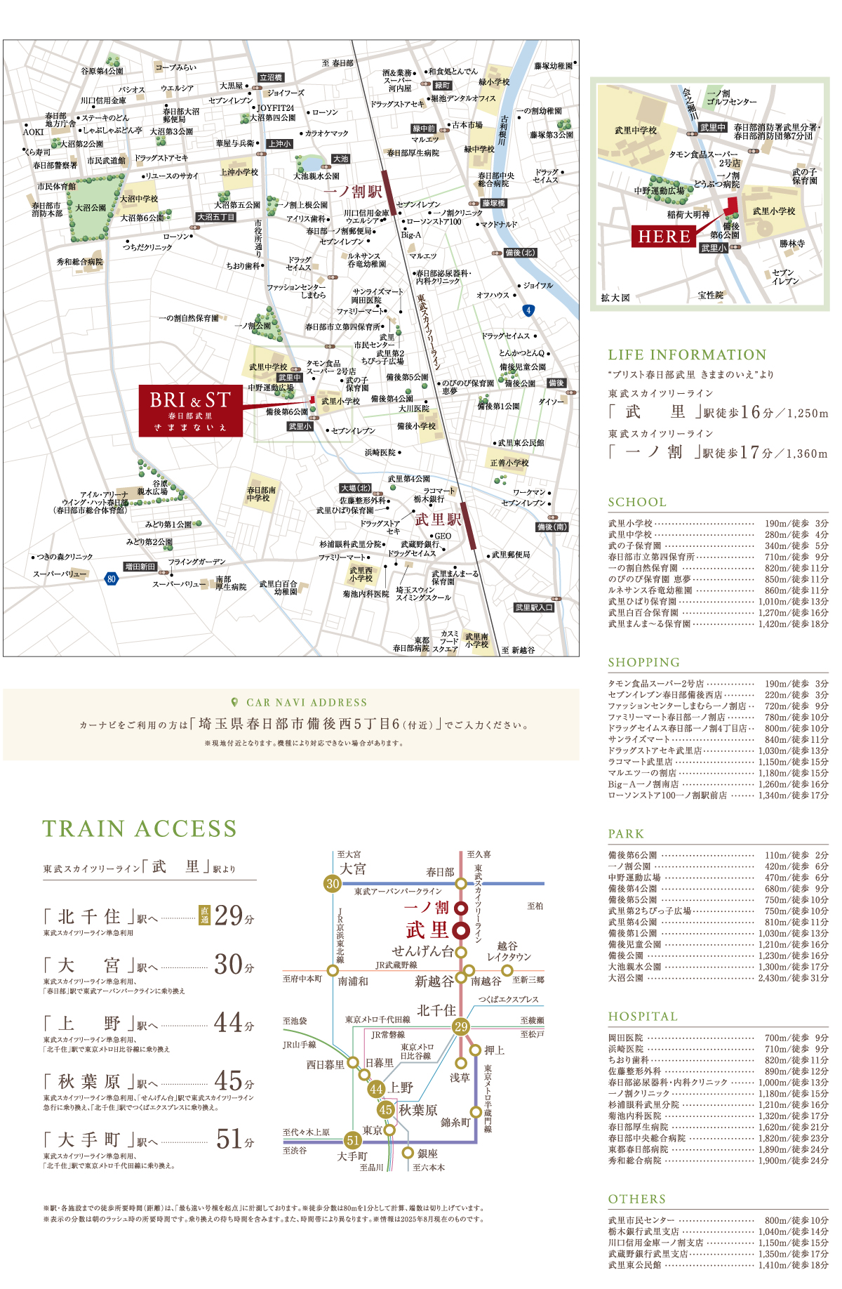 ◆東武スカイツリーライン「武里」駅まで徒歩15分~16分・自転車5分(実測)