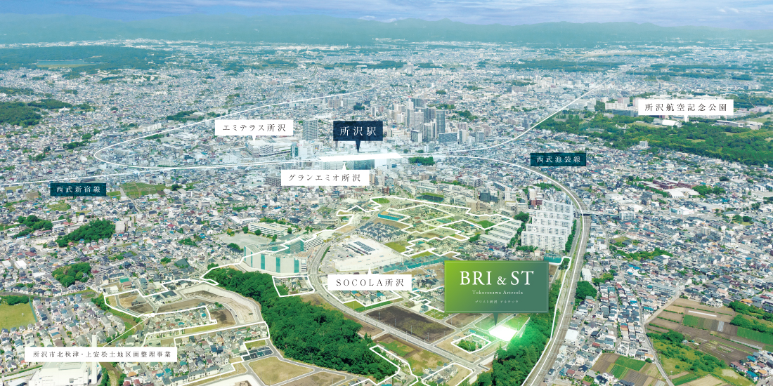 商業施設などが揃う利便性と豊かな自然が調和した地に、新たに誕生する全7邸の街。区画整理によって整えられた地に、ゼロカーボンシティを目指す「所沢」にふさわしい高機能の設備を擁し、