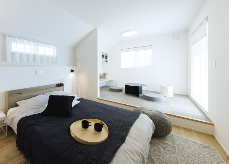 リビングに隣接したフレキシブルルーム。気軽に昼寝をしたりヨガやストレッチを楽しんだり、子どもの遊び場にもできる、家族共有のくつろぎ空間です。/PLAN 6