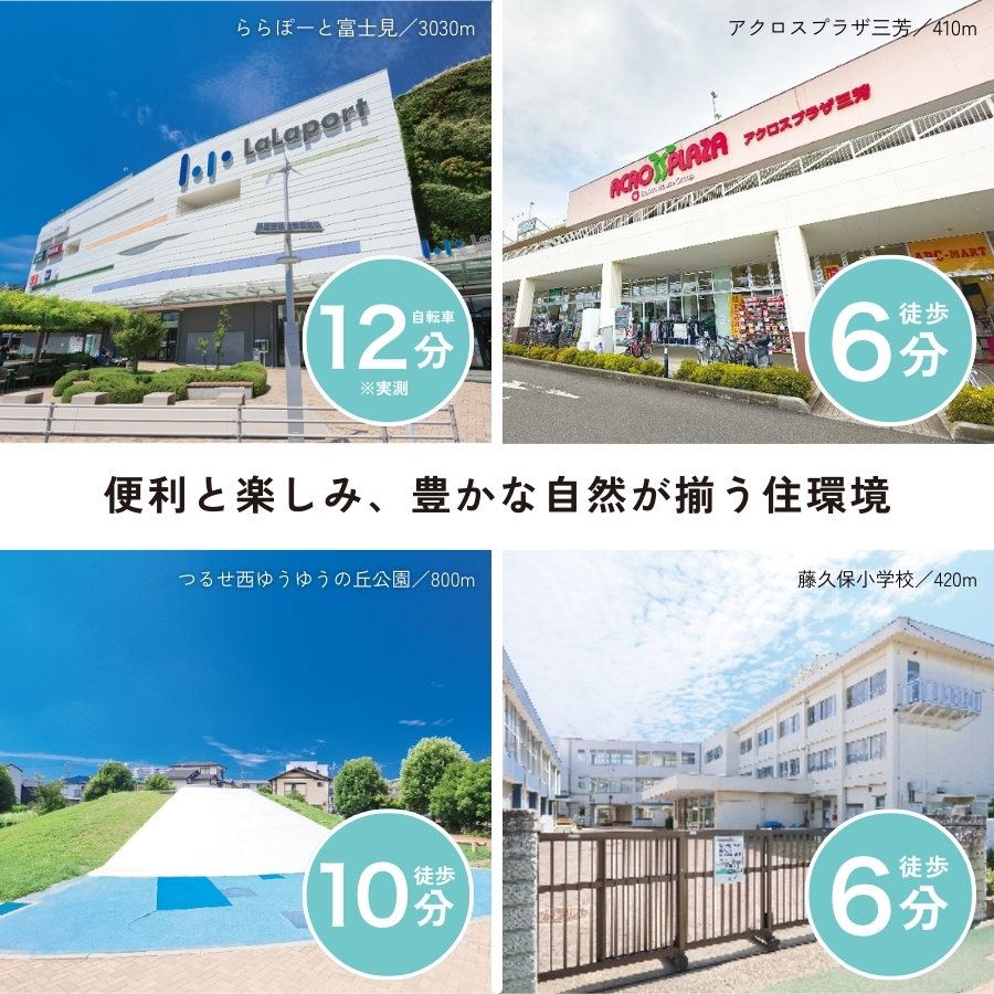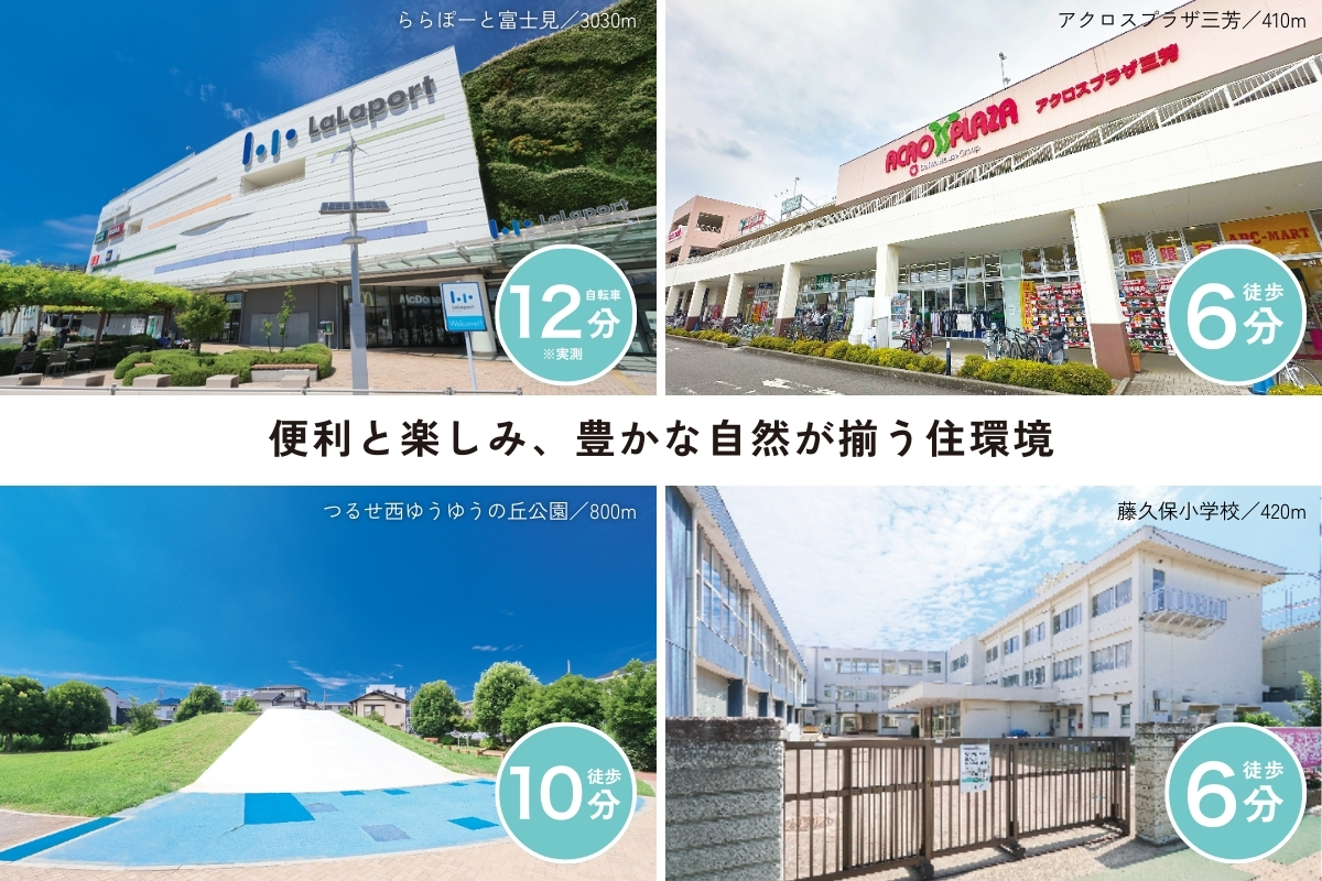 ◆「アクロスプラザ三芳」まで徒歩6分、「ららぽーと富士見」まで自転車12分※実測