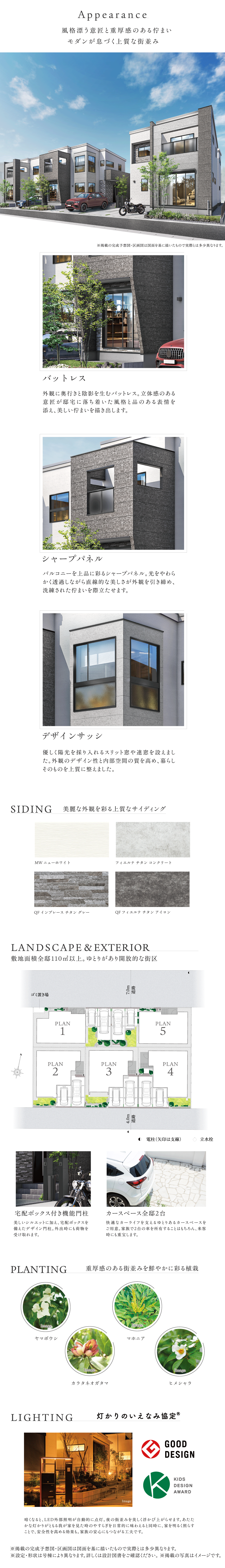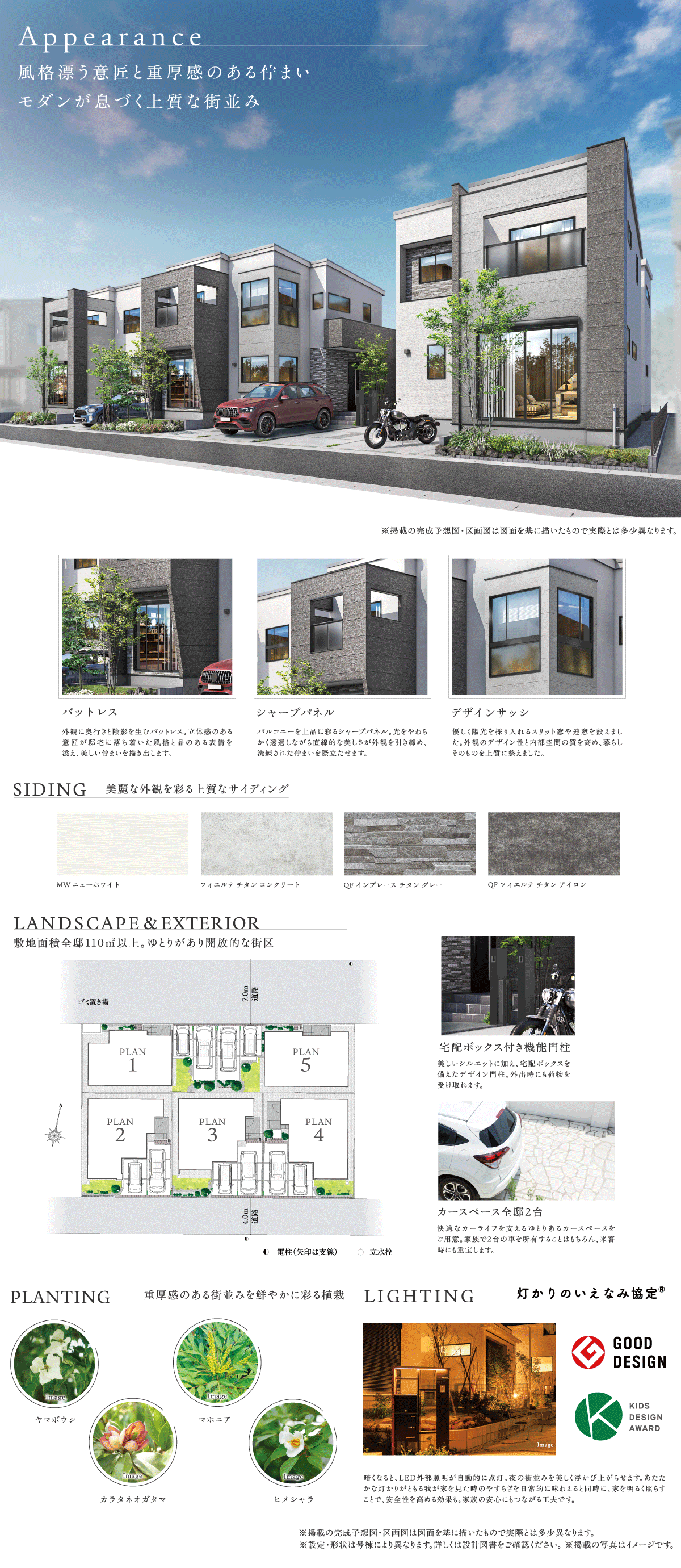 ◆敷地面積全邸110㎡以上のゆとりある開放的な街並み