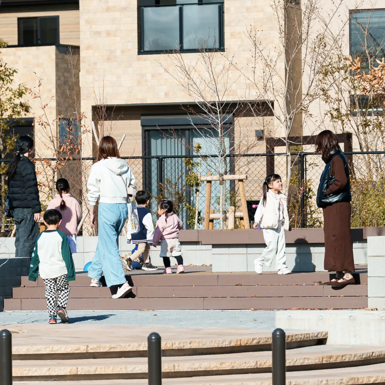 街の中心にあるのは明るい陽だまり。住民の集いの場にもある広やかな協定道路で、あたたかな陽光ぶ包まれながら遊んだり、おしゃべりを楽しめる全5邸の街。