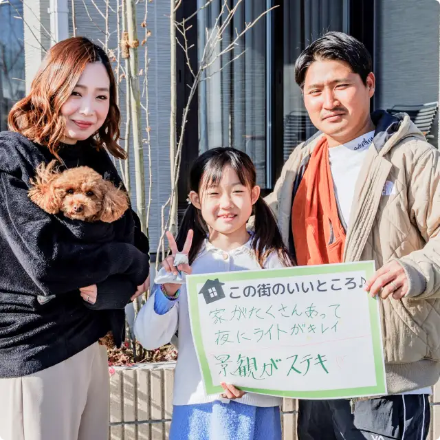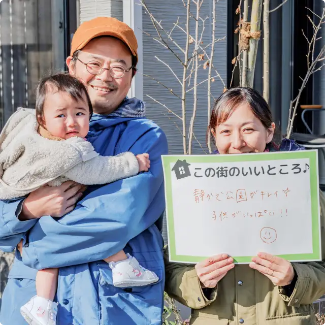 この街は、落ち着いた雰囲気で、安心して暮らせます。近隣には子育てファミリー層が多く、街区内では「うちの子は何歳です」といった会話が自然に生まれ、ご近所づきあいもスムーズに広がっていきますね。小学校への通学なども考慮してこの分譲地を選びましたが、これだけ同世代のお子さんがいれば、一緒に登下校できるお友達もすぐに見つかりそうで安心です。