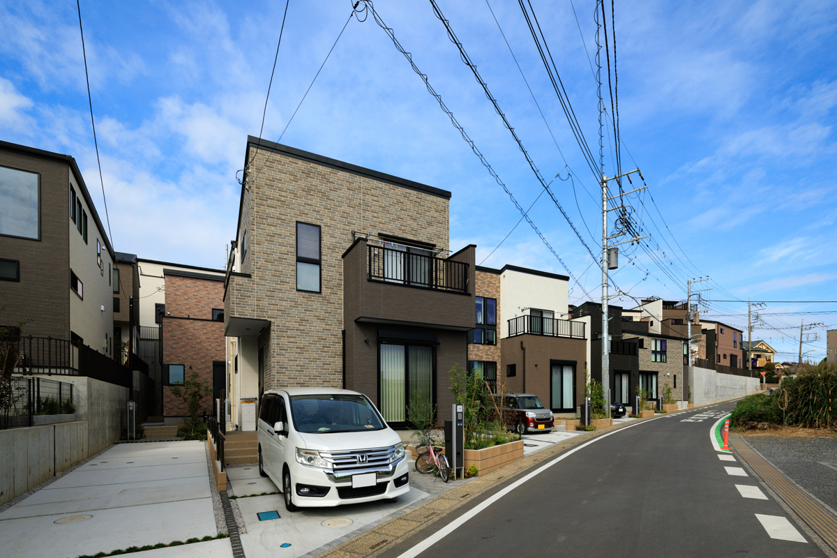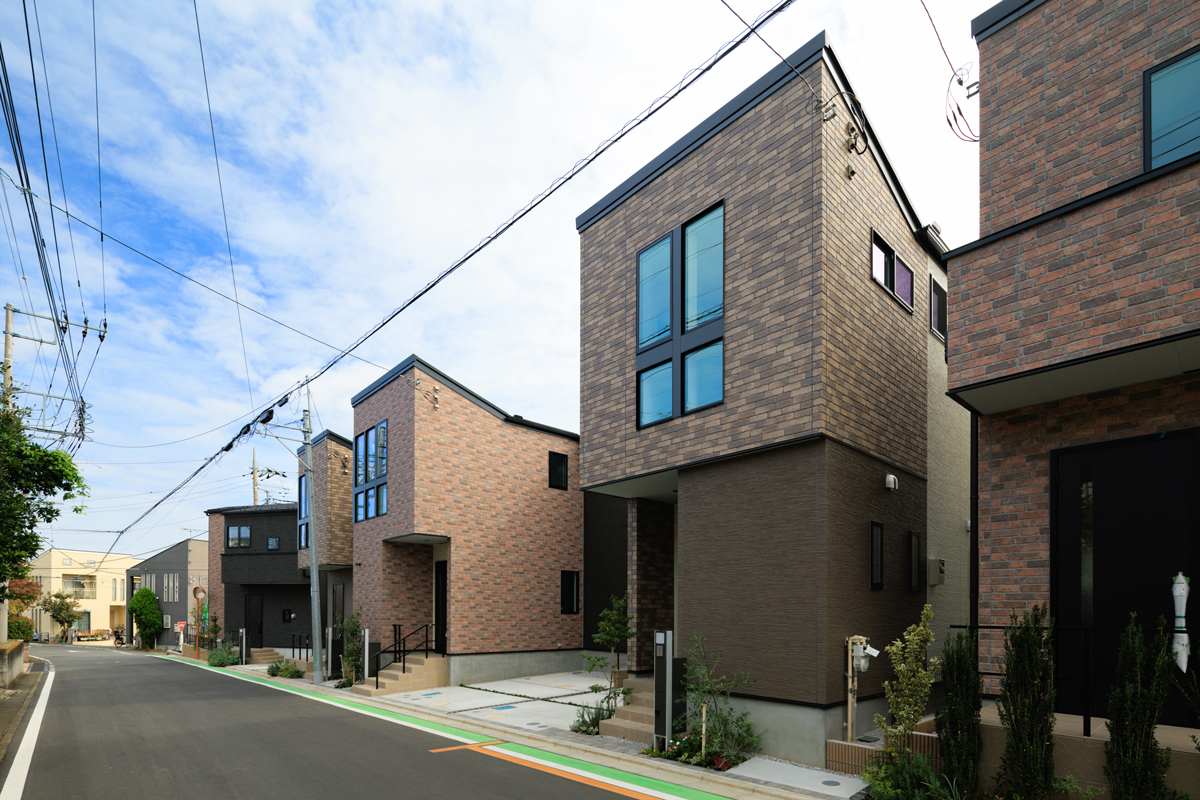 - レンガ調の外壁材をアクセントに用い、重厚でありながらぬくもりを感じる情景を創出。南東側が低くなったひな壇の街には陽光が豊かに降り注ぎ、街の情景だけでなく、日常的に明るさとあたたかさを堪能できます。