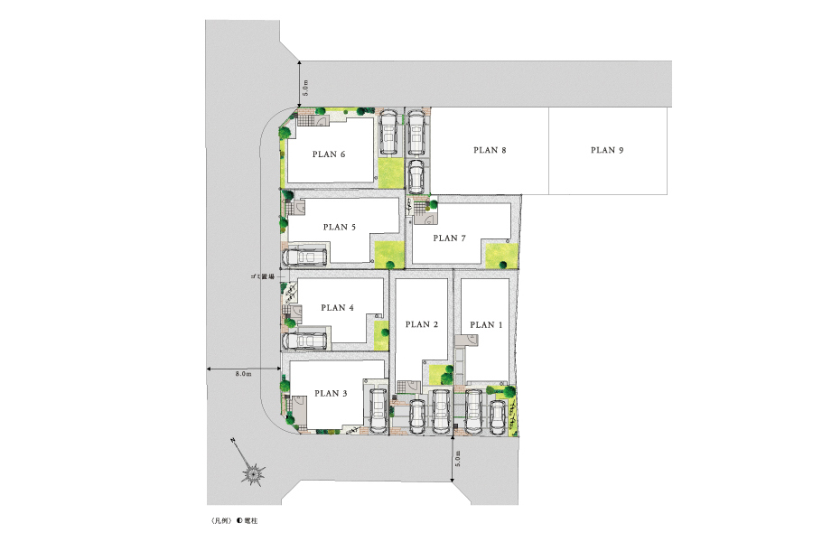 ◆第一種低層住居専用地域、区画整理地内。前面道路8.0m・5.0mの開放的な街並み