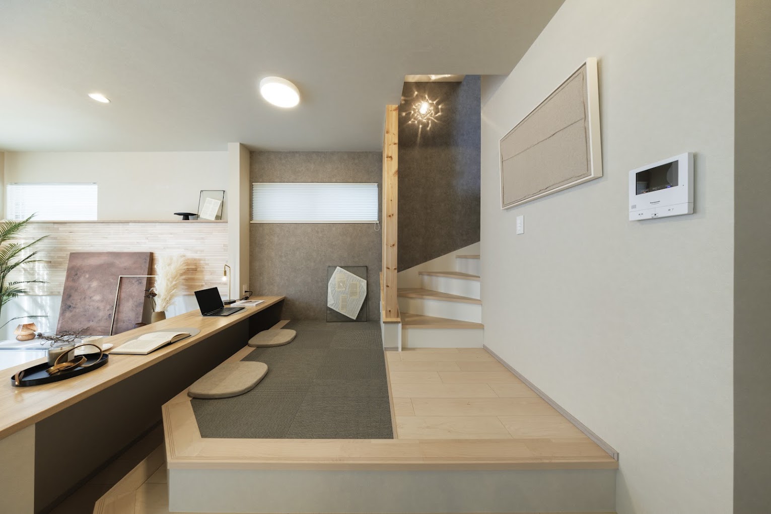 ◆調湿デザインウォール「エコカラットプラス」×天然木の豊かな表情が特徴の「the wall」を採用