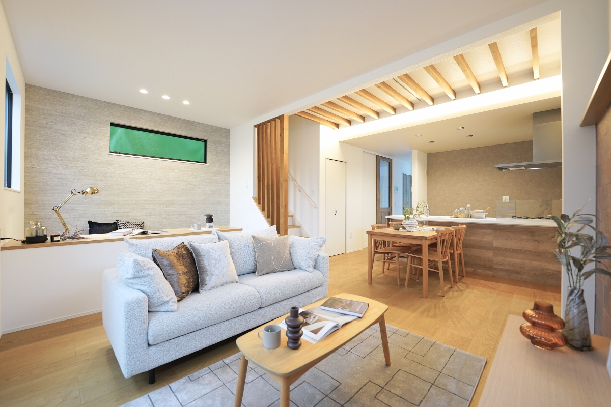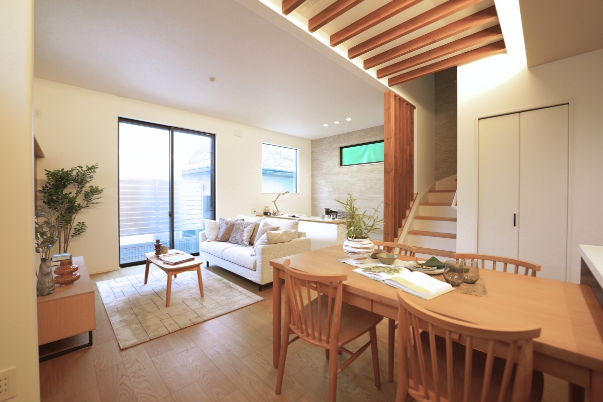 - 【家族の絆を育むリビング階段】リビング階段を中心に据えた設計で、外出や帰宅の際にも家族が自然に顔を合わせることができ、日々のコミュニケーションを育みます 。※3号棟/2026年2月撮影
