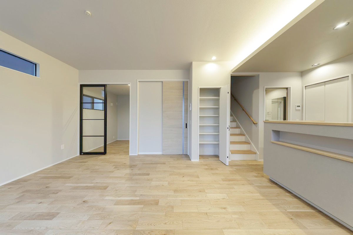 サイクルスペースやカースペースを建物と一体化。適材適所にある8つの収納空間で、家事も生活も効率的に。家族それぞれのライフスタイルに寄り添う快適空間を実現。