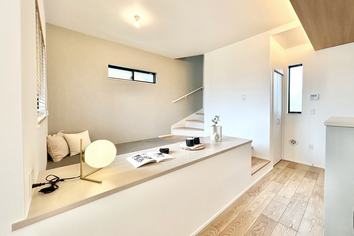 - 【足を伸ばして使える堀机】 ステアリビングに設置した堀机は、長時間の作業も快適。足を伸ばしながら仕事や学習、読書など、思い思いのスタイルで活用できます。※1号棟/2026年3月撮影