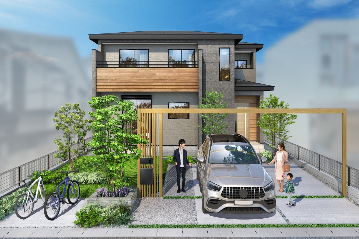 - 駅チカでありながら閑静な住宅地に、邸宅の趣を感じさせる住まいが誕生します。 敷地面積175㎡超のゆとりある敷地に建つのは、木目調アクセントが映える落ち着いた佇まいの建物。