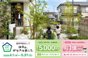 『春の体感すまいフェア』 開催期間:2026年4月1日(水)~2026年5月31日(日) 期間中のご成約で、選べる3つの特典!最大80万円分をプレゼント!