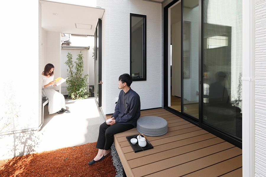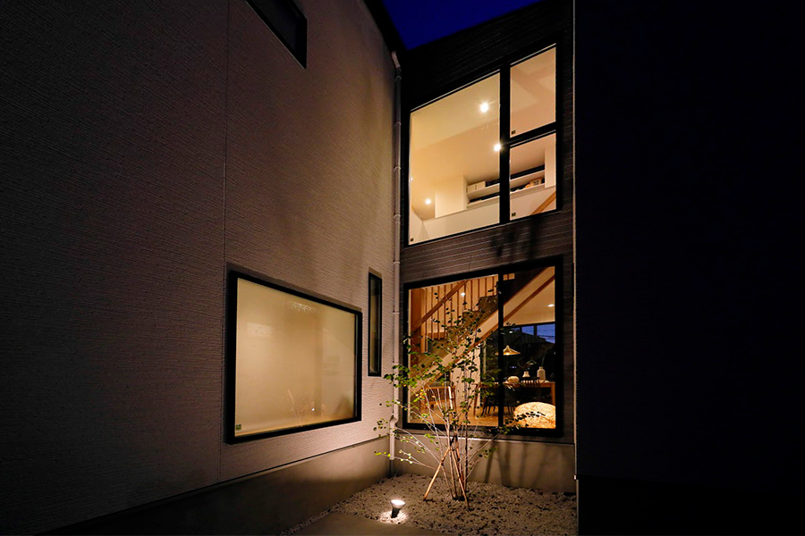 集いの空間と個の時間を紡ぐ「あわい」に心地よい光と風が通るデザイナーズハウス 光の切り取る“あわい”余白を散りばめることによって、一刻と光の質は変化してゆき、明るさと暗さが交差しながら光の存在を確かめられる邸宅。室内の楽しい団らんが光と共にあふれます。