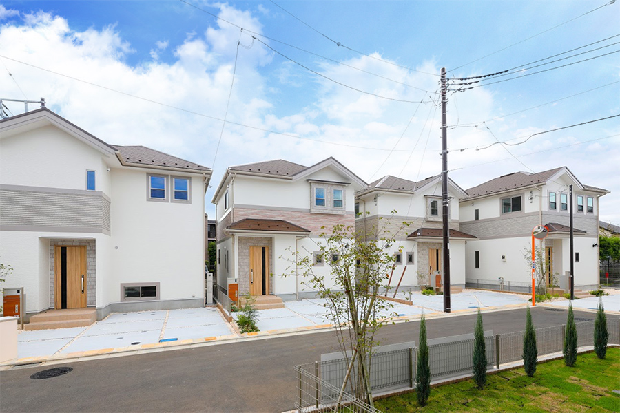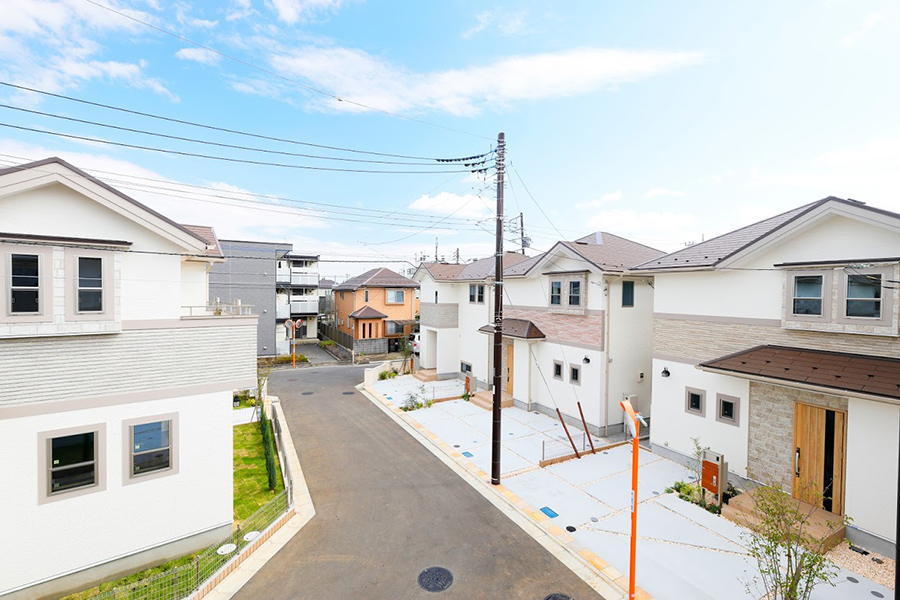 自然が織りなす雄大なグリーンと、空のブルーに映える明るい外観。 永く愛せるシンプルな装いを中心に、ストーン調のサイディングが街並み全体にリゾートの気配をプラスしました。