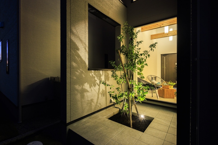 テラスや庭、アプローチなどが創り出す暮らしの中間領域。中間的域とは単なる「余白の空間」ではなく、植栽やベンチをプラスしたり境界線を曖昧にすることで、人や暮らし、エリアのつながりを生み出す場のこと。