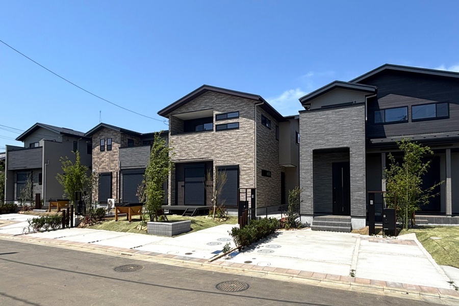生活にゆとりと寛ぎを添えるフロントポーチやウッドデッキに加えて、街区内には住まう人の交流を育むクルドサックを採用。また、おおらかな空気にアクセントとなるシックなサイディングを施することで、穏やかながらも、上質な趣を醸し出す住まいを創出しました。