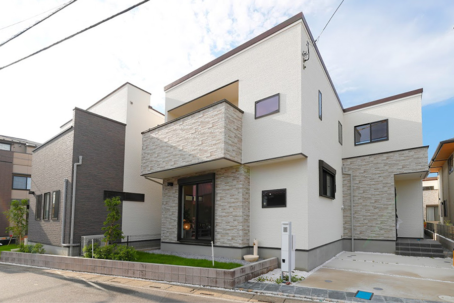 さらに外壁は淡いカラーをベースとし、天然石のような風合いを感じさせる石積調サイディングをアクセントに、やわらかなニュアンスの中に個性が薫る、洗練されたアーバンスタイルの街並みです。