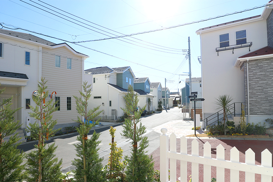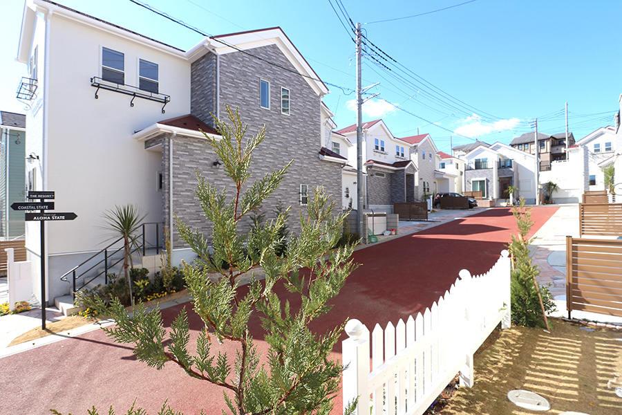 常夏の楽園、カリフォルニア・ハワイの2つのリゾート地をモチーフに描く、自然風素材のコントラストが美しい、全27邸の街並み。