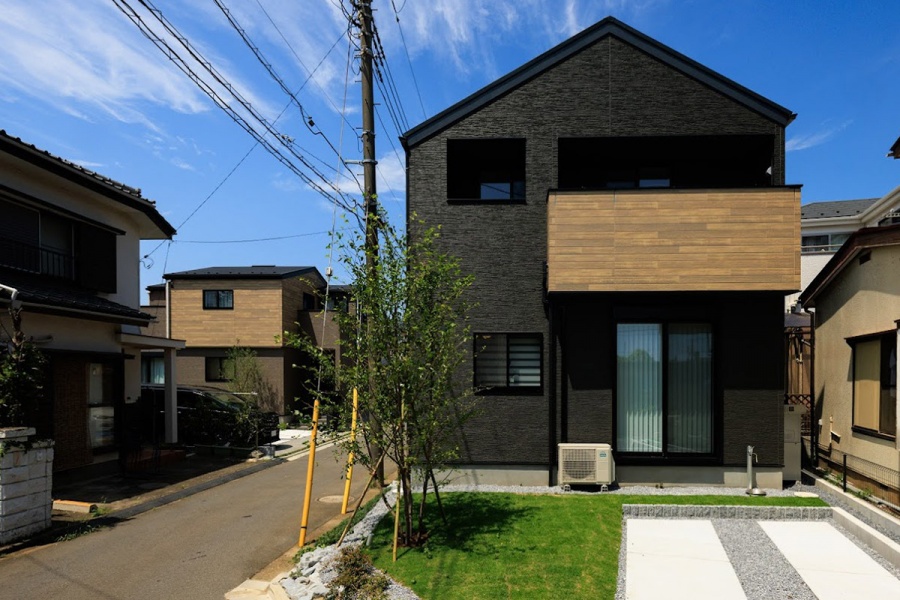 石目調と木目調の外壁材がナチュラルさを、落ち着いた色合いがモダンさを演出する全2邸。庭や植栽の緑が鮮やかに惹き立ち、穏やかな暮らしを育みます。