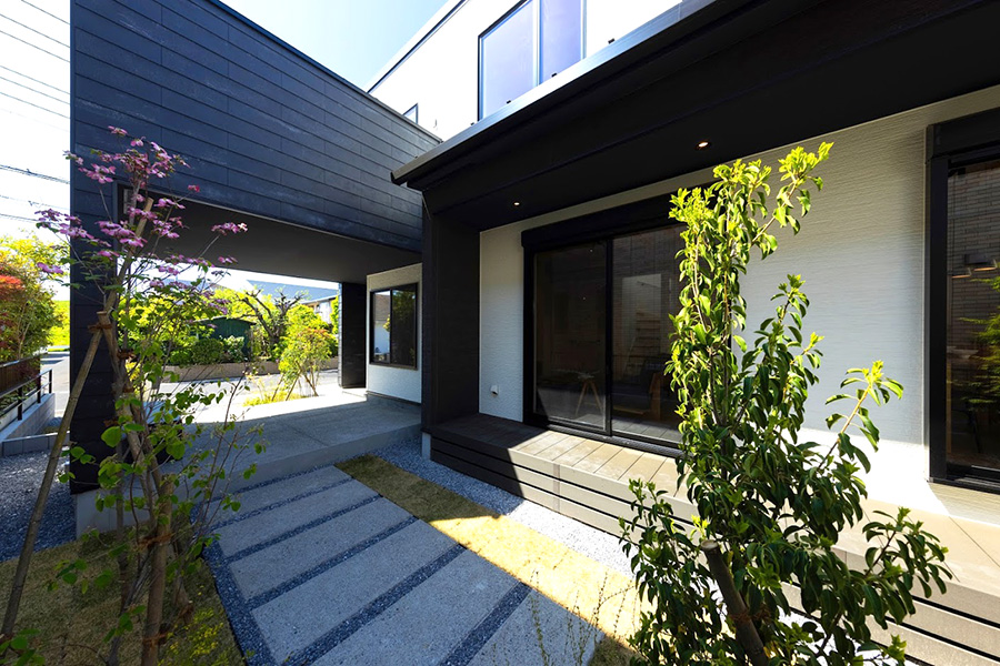 敷地から一歩奥まり、家屋と一体となるように「門」を設定。門の内部は一定の奥行きを確保した「余白」空間とすることで、その奥に続く庭や縁側、そして住まいの内部にまで緩やかにつながる「連続的な境界」を創出します。