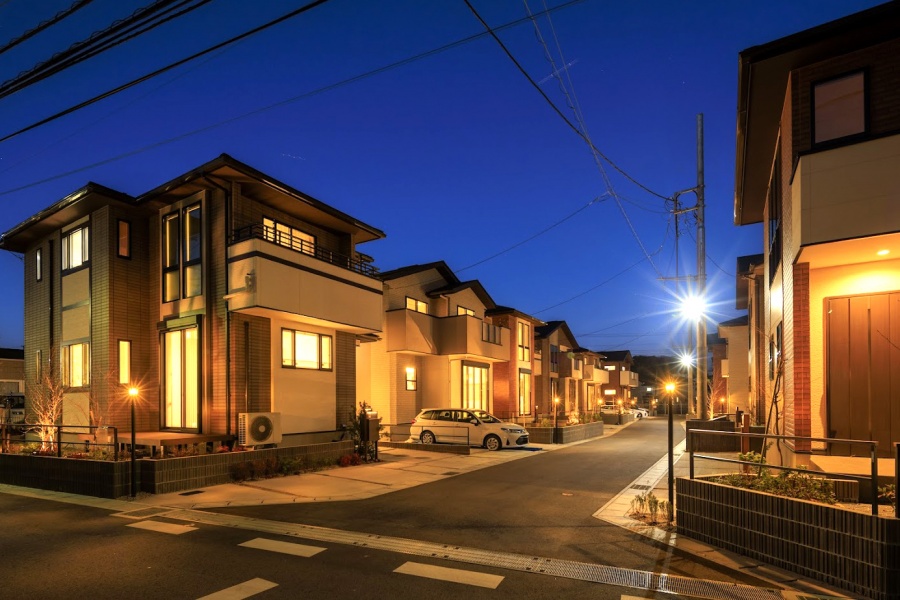 一邸一邸の外観には、煉瓦調タイルなどを用いて、落ち着いた邸宅風(トラディショナル)のデザインを仕立てました。夜には高級感のある外灯が街並みをライトアップして、幻想的な景観を描き出します。