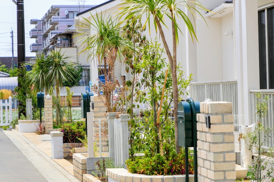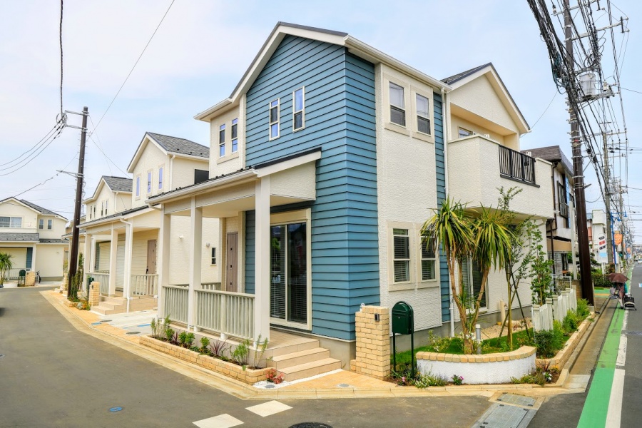 街並みをつくる外観はフロントポーチとラップサイディングを使い特徴的なアメリカンスタイルの建物とスペイン・イタリア・イギリス調の国際色豊かな建物デザインがミックスされていました。「カフェマチ鶴瀬 シーサイドテイスト」はこの街をモチーフにしています。
