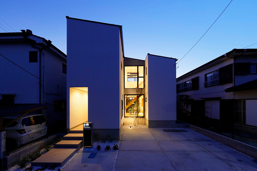 集いの空間と個の時間を紡ぐ「あわい」に心地よい光と風が通るデザイナーズハウス 光の切り取る“あわい”余白を散りばめることによって、一刻と光の質は変化してゆき、明るさと暗さが交差しながら光の存在を確かめられる邸宅。室内の楽しい団らんが光と共にあふれます。