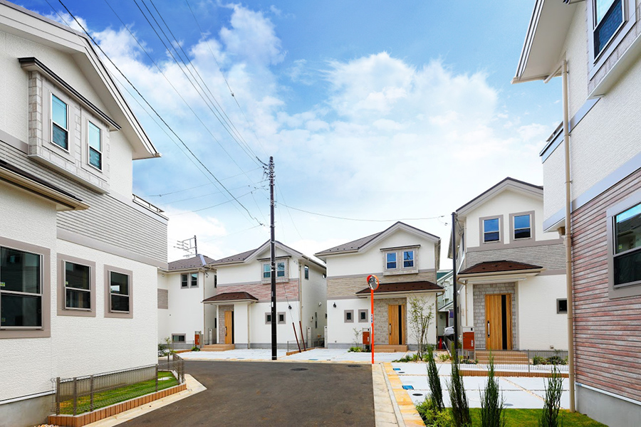 自然が織りなす雄大なグリーンと、空のブルーに映える明るい外観。 永く愛せるシンプルな装いを中心に、ストーン調のサイディングが街並み全体にリゾートの気配をプラスしました。