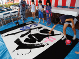 「こども阿波踊り教室&流し踊り」では、ご家族で阿波踊りを体験。また、地域の書道教室さんにスペースをご提供し、子ども達による書道展や、書道教室も開催。