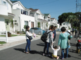 分譲地のコンセプトはハワイアンリゾート。街のストリートやコミュニティパークにはシンボルツリーとなるココスヤシ、そしてお庭には、ニオイシュロランをメインにたくさんの植栽が植えられリゾート感を演出しています。植栽剪定講習会は実際にご入居者様のお庭をおかりして開催。脚立を利用する高木の剪定方法など学ばれました。