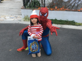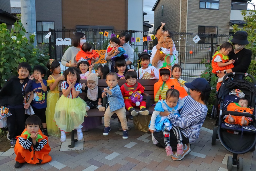 当日は分譲地内にある公園に仮装して集まり、二班に分かれ小学生たちをリーダー・副リーダーに任命、子どもたちが分譲地のお菓子スポットの家を回ります。途中でスパイダーマンが登場するとおお盛り上がり!中には怖くて近づけない子も・・・でも勇気をふり絞ってお菓子をゲット!